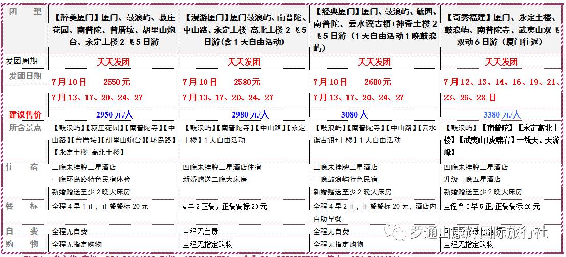 2. 廈門旅行社旅游報(bào)價(jià)表