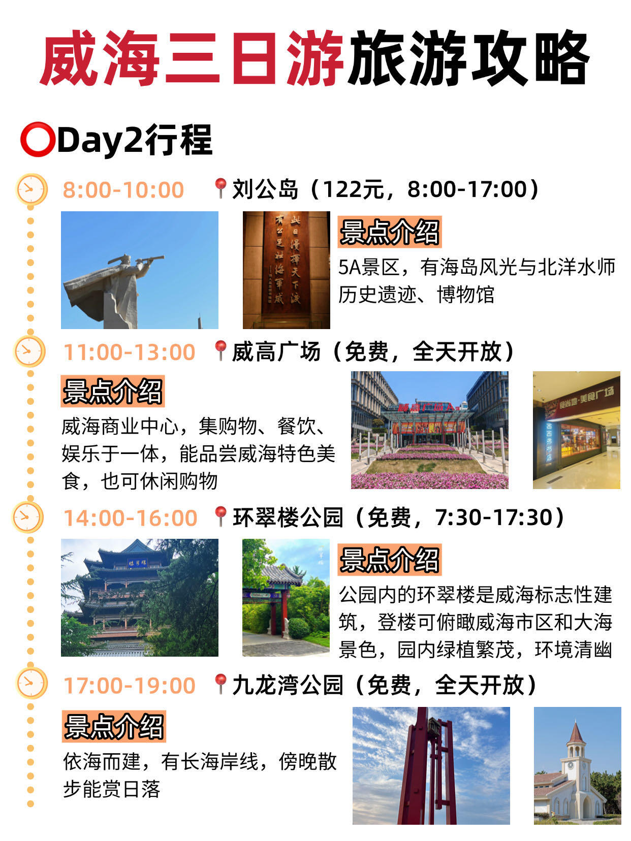 2、第二天:根據(jù)目的地的特色安排行程,如果是歷史文化名城,可以參觀博物館、古跡等;如果是自然風光勝地,可以進行徒步、攝影等活動;如果是海濱度假城市,可以盡情享受陽光、沙灘和海水。